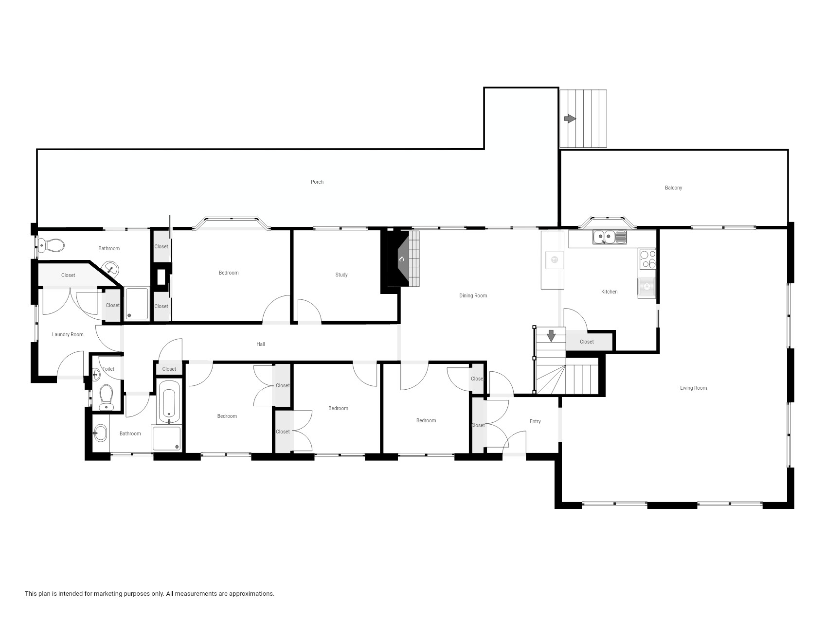 Upstairs accommodates four generous bedrooms, including the main with ensuite, all with built-in robes, alongside a spacious office that easily doubles as a guest bedroom or additional retreat. A fully renovated bathroom enhances the upper level, while downstairs a separate guest bedroom with toilet offers ideal separation for visitors, extended family, or a private teenagers’ zone.