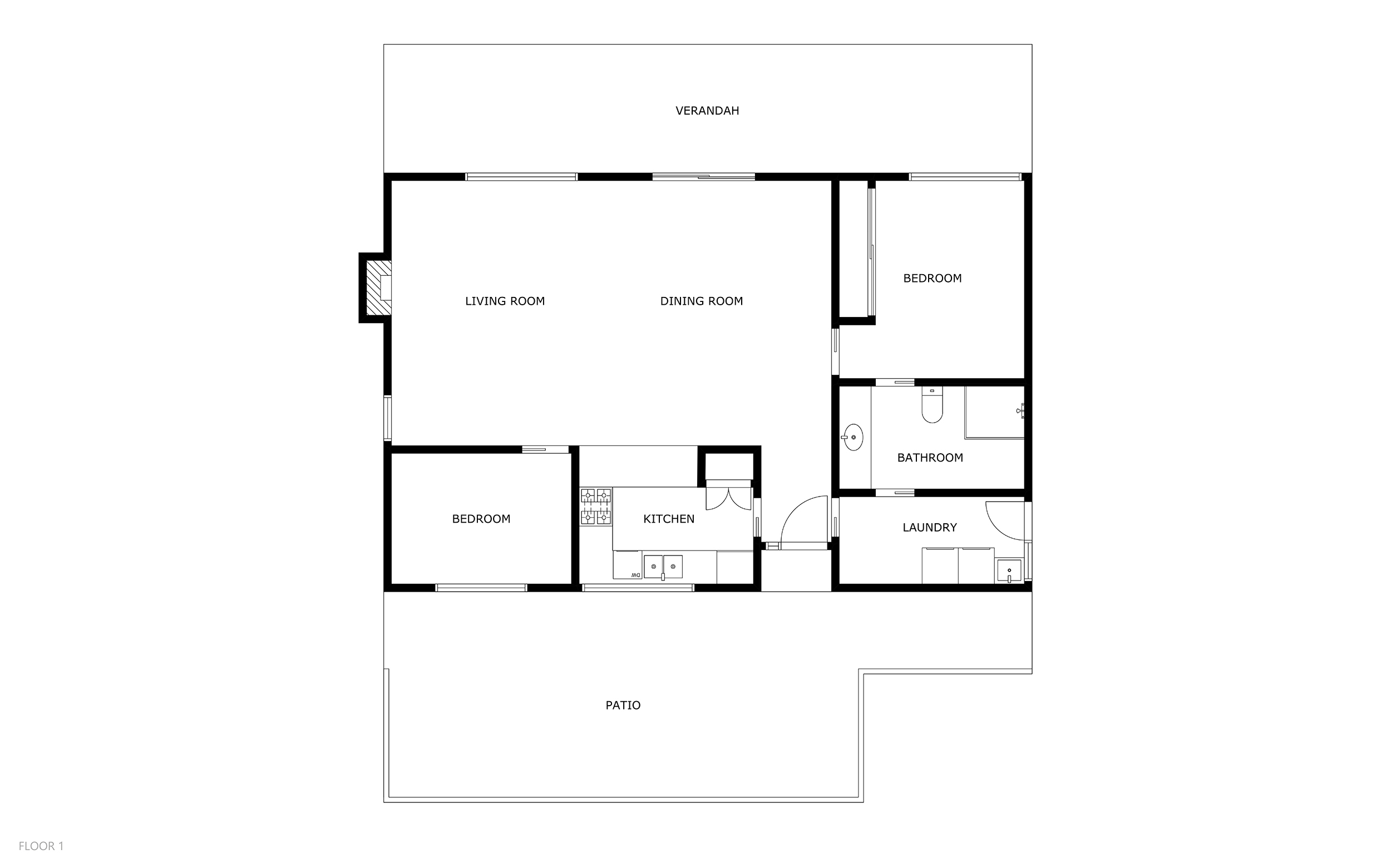 Set on a large, 1/4 acre (1,000m2) block, this 2-bedroom, white-rendered brick home, with floor to ceiling timber framed windows, has an easy and relaxed style of its own.